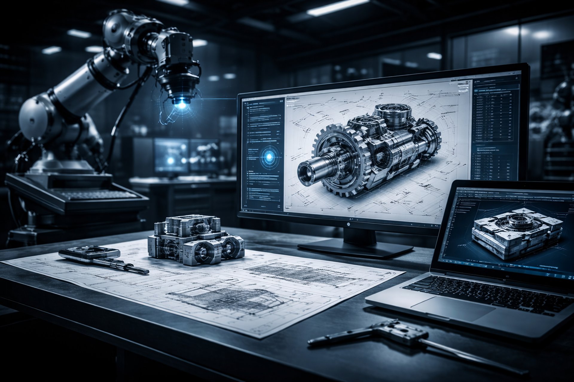 Desarrollo de piezas, conjuntos y soluciones mecánicas con documentación técnica lista para fabricar.