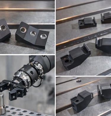 Diseño de garras específicas para una aplicación concreta en robótica industrial. Desarrollo orientado a funcionalidad, fiabilidad de agarre e integración real en proceso, adaptando la solución a la pieza, al movimiento y a las condiciones de trabajo.